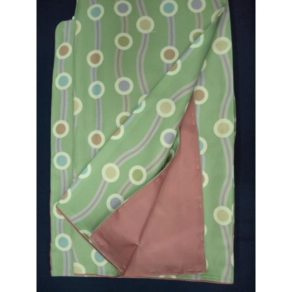 大特価 01504M お仕立て上がり 洗えるきもの 袷 モスグリーン 水玉柄 Mサイズ (レターパック不可)