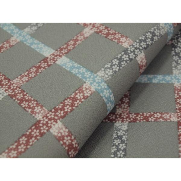 大特価 01522M お仕立て上がり 洗えるきもの 袷 グレー系 格子小花 Mサイズ (レターパック不可)