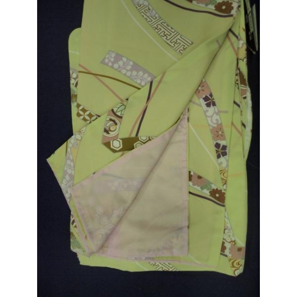 大特価 01554M お仕立て上がり リョウコ・キクチ(R.KIKUCHI) 洗えるきもの 袷 黄緑系 Mサイズ (レターパック不可)