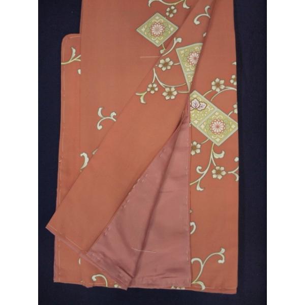 大幅値下げ 01564L お仕立て上がり リョウコ・キクチ(R.KIKUCHI) 洗えるきもの 袷 オレンジ系 Lサイズ (レターパック不可)