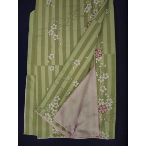 大幅値下げ 01567L お仕立て上がり リョウコ・キクチ(R.KIKUCHI) 洗えるきもの 袷 モスグリーン Lサイズ (レターパック不可)