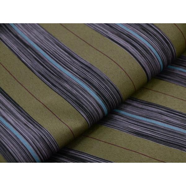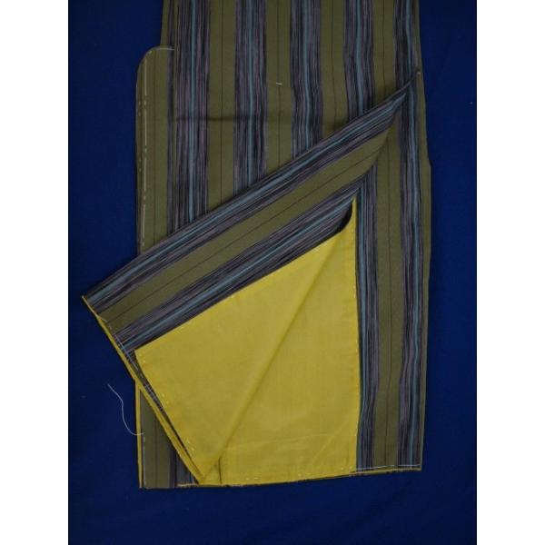 大特価 01613M お仕立て上がり 洗えるきもの 袷 カーキ色系 縞柄 Mサイズ (レターパック不可)