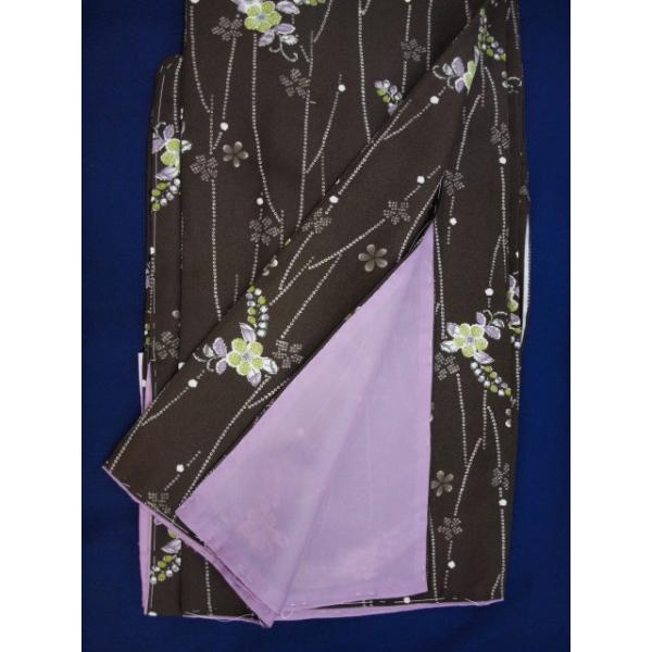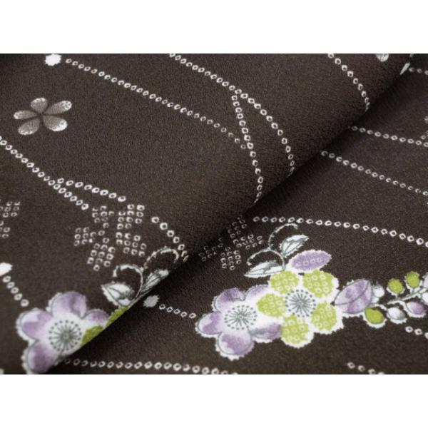 大特価 01614L お仕立て上がり 洗えるきもの 袷 茶色系 花柄 Lサイズ (レターパック不可)