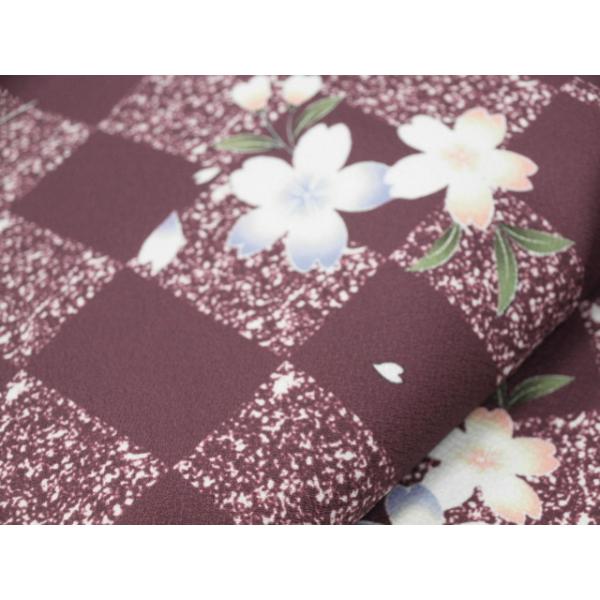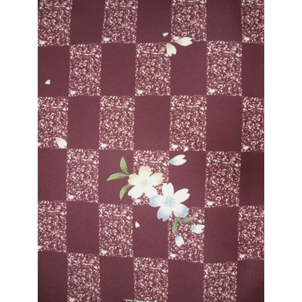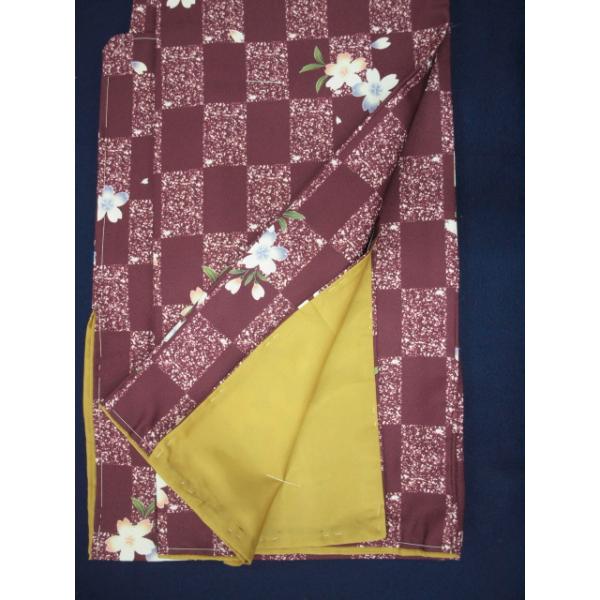 大特価 01647M 洗えるきもの 袷 えび茶色 市松・花柄 Mサイズ (レターパック不可)