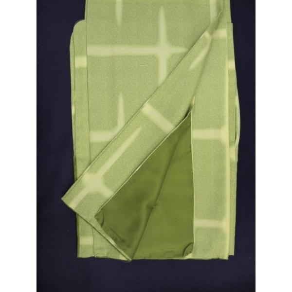 お仕立て上がり 01423M 洗えるきもの 袷 黄緑 格子 Mサイズ (レターパック不可)