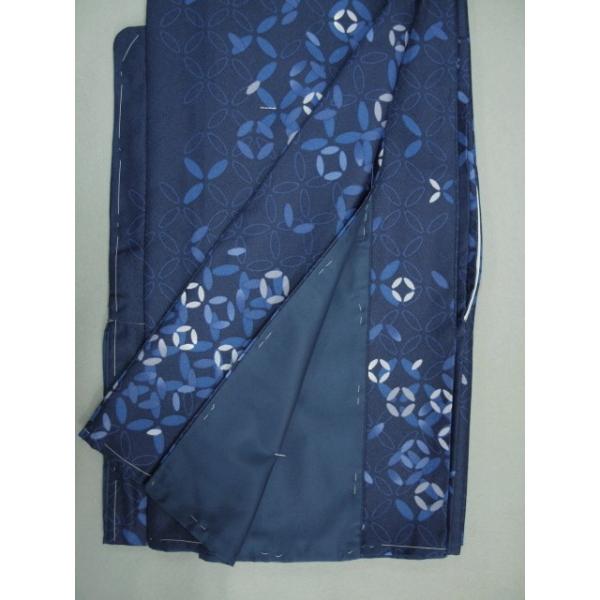 お仕立て上がり 01427M 洗えるきもの 袷 紺 七宝 Mサイズ (レターパック不可)