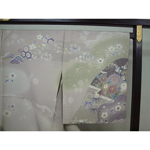 正絹手縫い訪問着 1412 高級タイシルク地使用 藤鼠色系ぼかし 四季草花