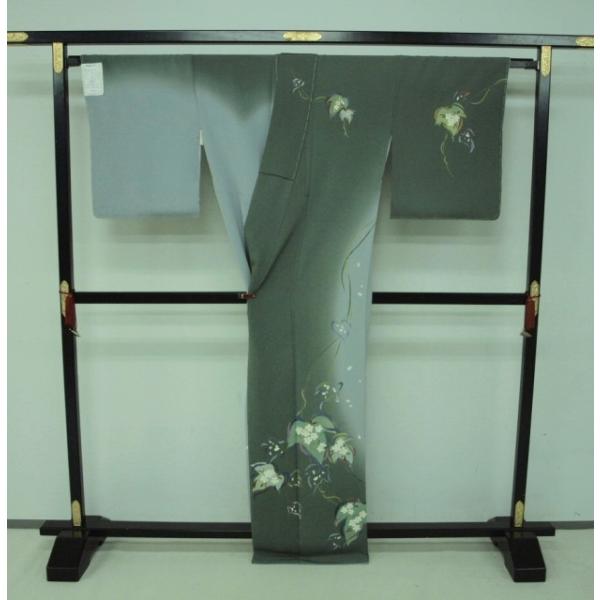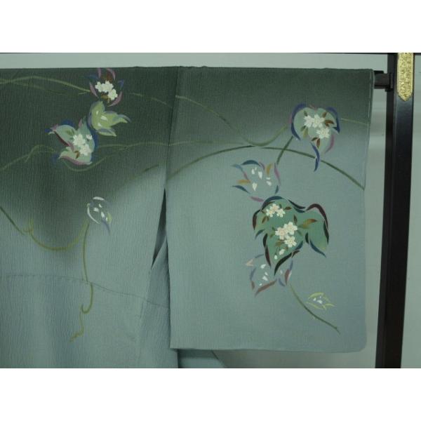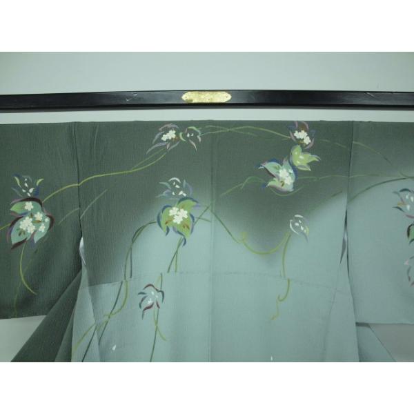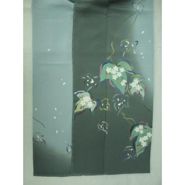 正絹袷訪問着 1496 モスグリーン系 草花 大幅値下げ お仕立て上がり