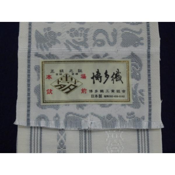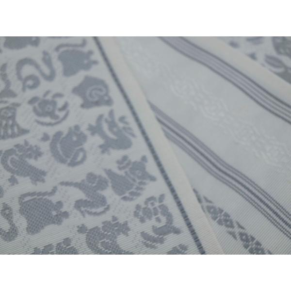 大幅値下げ 0208 本場筑前博多帯 男帯 森博多織謹製 白地/グレー 十二支柄・献上柄 レターパック発送!