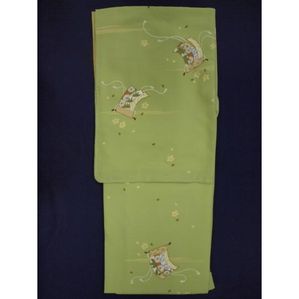 大幅値下げ 01570M お仕立て上がり リョウコ・キクチ(R.KIKUCHI) 洗えるきもの 袷 モスグリーン色 Mサイズ(レターパック不可)