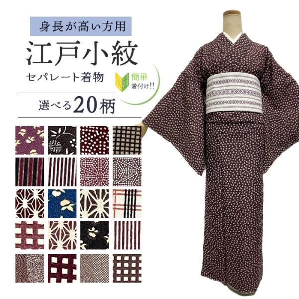 江戸小紋 洗える着物Lサイズ セパレート着物【セパレート仕立て納品】 セパレートキモノ 単品 二部式 ウエストゴム 履くだけ 羽織るだけ