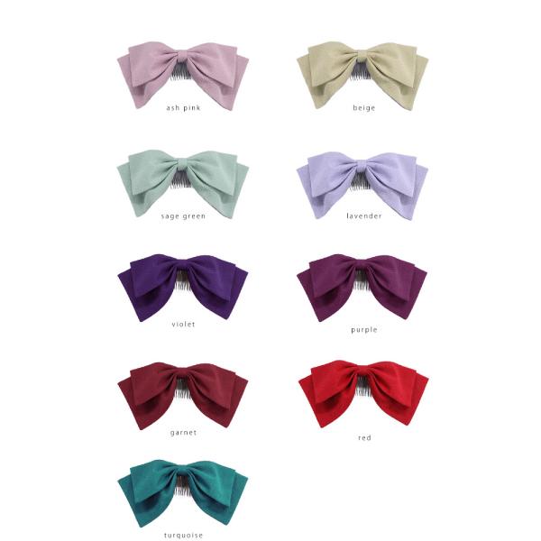 卒業式で袴に合わせるリボンの髪飾りです。上品なちりめん生地なので着物に大変良く似合います。コームタイプなのでしっかり髪に差し込めて安定します(必要であればアメピン等でコームを留めてください。)