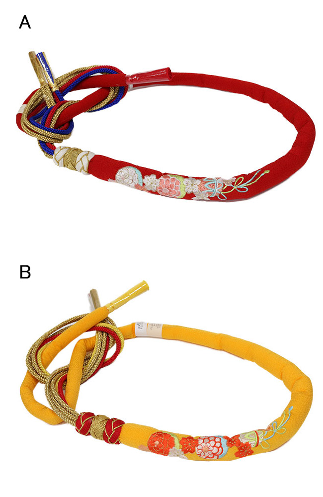 振袖用の帯締めのレンタルです。刺繍を施した丸ぐけタイプ、伊賀の組紐タイプや平締め(高麗)タイプなどをご用意しています。振袖のフルセットレンタルなどで付いてくる帯締めは非常にシンプルで手ごろなものですが、こういった帯締めなどの小物をすこしランクアップさせることで見た目が非常に若返り、お写真も華やかになりますよ!ぜひ振袖用帯締めのレンタルをご活用くださいね。