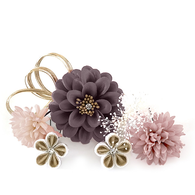 髪飾り 成人式 卒業式 振袖用 7本セット 24W118 カスミソウ ピンポンマム Uピン 華やか くすみカラー 爆買