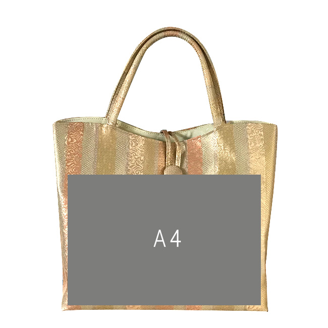 金襴の手提げバッグです。A4サイズがしっかり入って外から覗かないタイプです。日本製でしっかりとした丁寧な作りです。