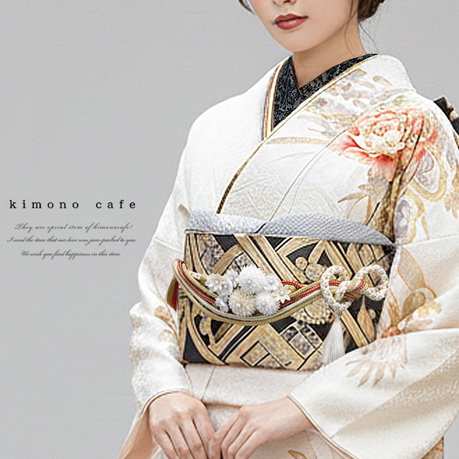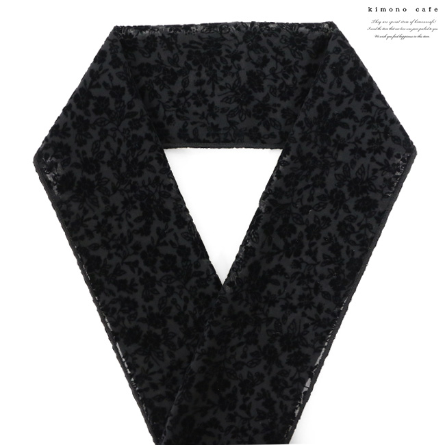 振袖 半衿 小花 フロッキー 地模様 ベージュ ブラック 洋風