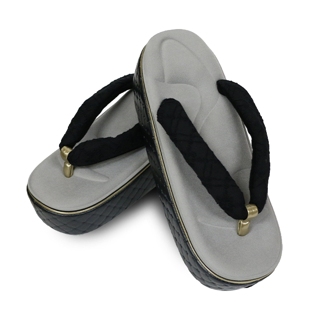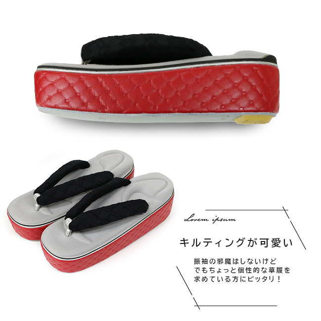 【キルティングの立体感が足元に個性をプラス】大胆なキルティングデザインが目を引く、草履にも個性をもたせたいあなたにおすすめ!さらに、やわらかクッション台で長時間でも快適。履きなれない、草履に不安がある方にもおすすめです。