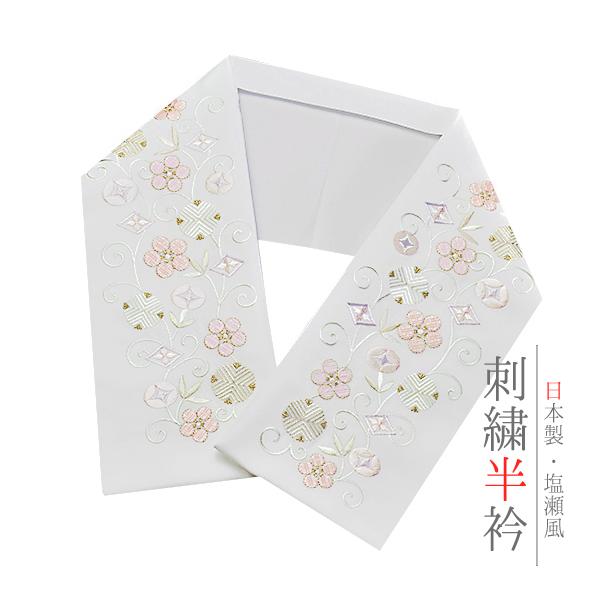 半衿 振袖 成人式 訪問着 刺繍 白地 フォーマル 黒留袖 色留袖 結婚式 ポリエステル 花 雪輪 桜 菊 椿 京越 着物 半襟 No.10-7242