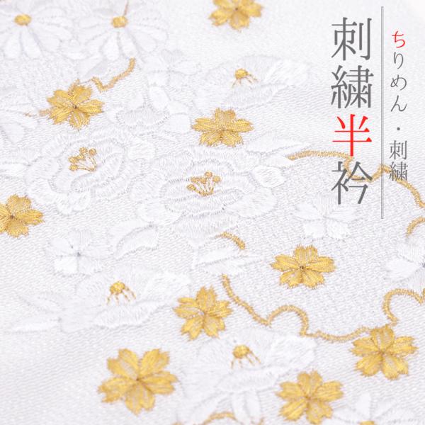 半衿 振袖 成人式 訪問着 刺繍 白地 白 ちりめん 桜 礼装用 黒留袖 色留袖 結婚式 ポリエステル 京越 着物 和装 半襟 No.10-7268