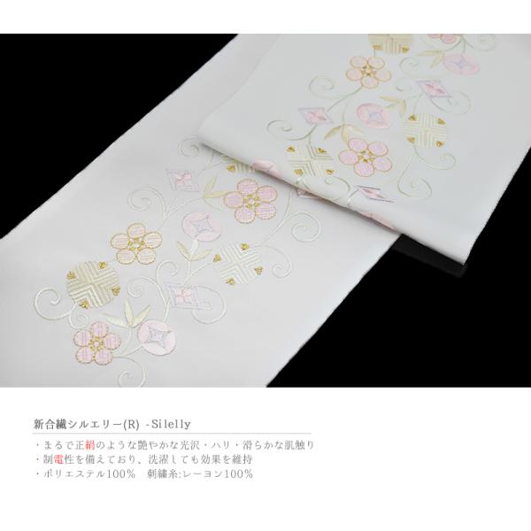 半衿 半襟 振袖 成人式 刺繍 白地 薄ピンク 薄紫 薄緑 笹蔓 緞子 金糸 シルエリー Silelly おしゃれ 半衿 刺繍半衿 お洒 No.10-0546