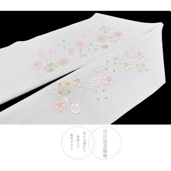 半衿 振袖 成人式 訪問着 刺繍 白地 白 ちりめん 桜 礼装用 黒留袖 色留袖 結婚式 ポリエステル 京越 着物 和装 半襟 No.10-7268