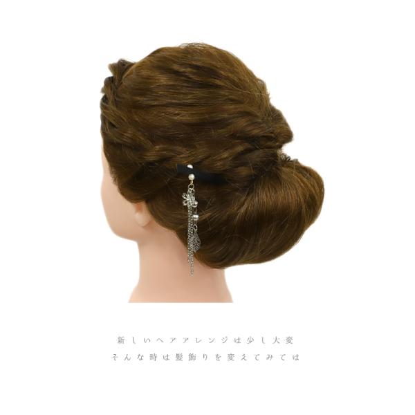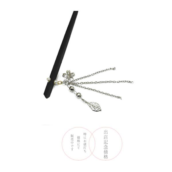 一本差し 髪飾り 成人式 振袖 袴 浴衣 かんざし 桜 黒 シルバー パール 下がり リーフ 葉 和柄 おしゃれ かわいい チェーン キ No.10-1053