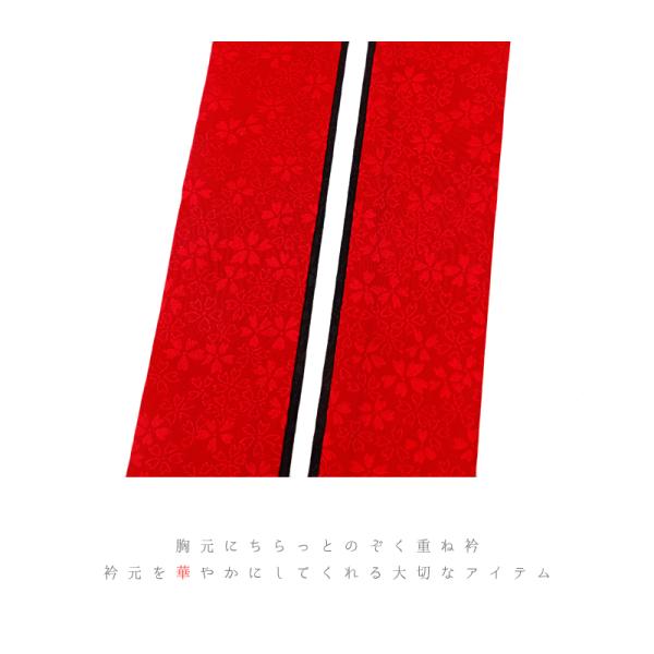 重ね衿 振袖 伊達衿 正絹 赤 黒 リバーシブル 花 桜 小花 襟ピン