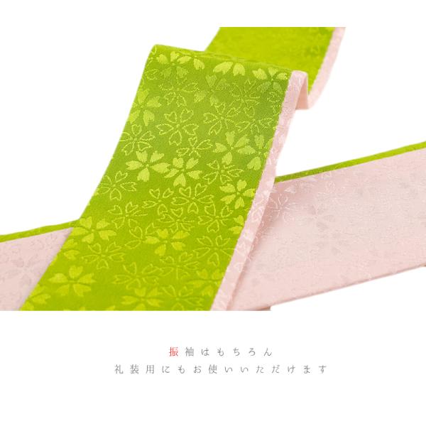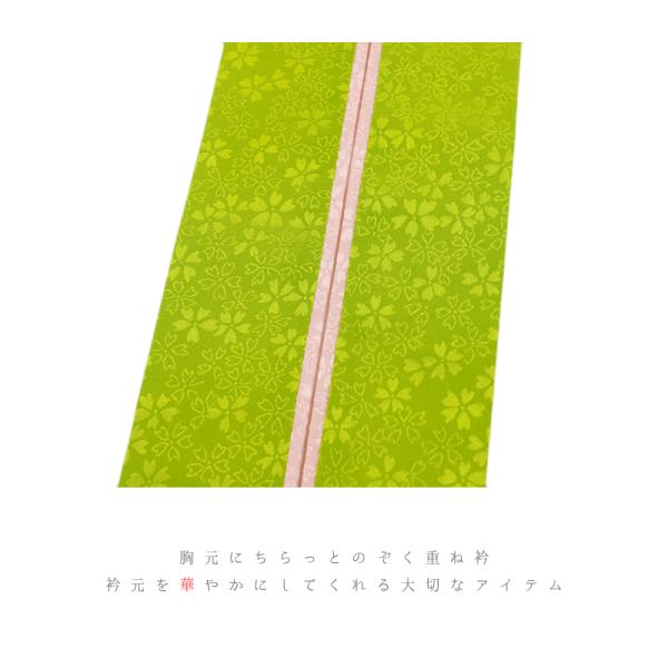 重ね衿 振袖 伊達衿 正絹 渋緑 黄緑 ピンク リバーシブル 花 桜