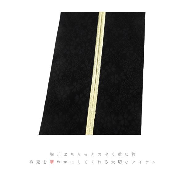 重ね衿 振袖 成人式 七五三 重ね襟 黒地 ゴールド 正絹 礼装用 フォーマル 花 桜 小花 襟ピン付き 裏金 伊達衿 日本製 お洒落 No.10-5124