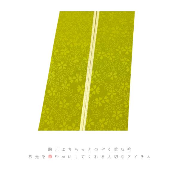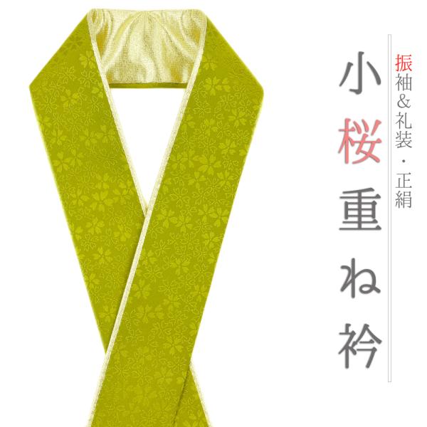 重ね衿 振袖 伊達衿 正絹 渋緑 ゴールド 花 桜 小花 襟ピン付き