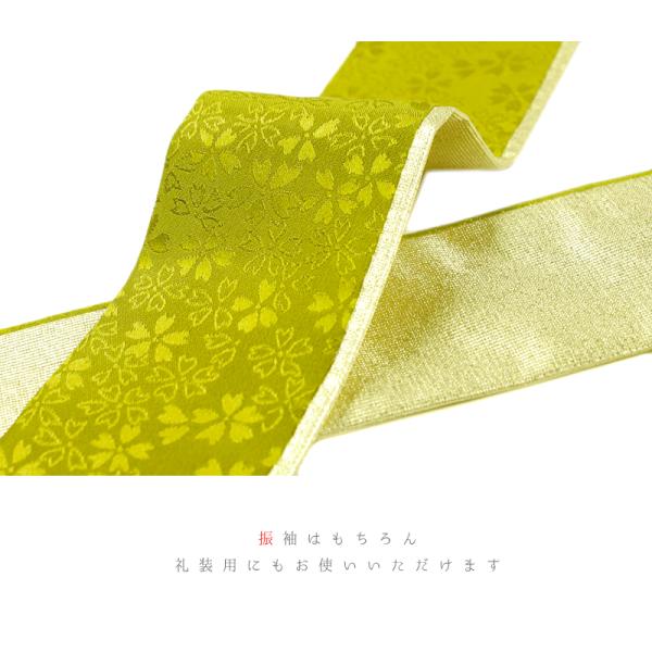 重ね衿 振袖 伊達衿 正絹 渋緑 ゴールド 花 桜 小花 襟ピン付き 裏金 礼装用 フォーマル 日本製 お洒落 可愛い ちりめん 訪問着 No.10-5131