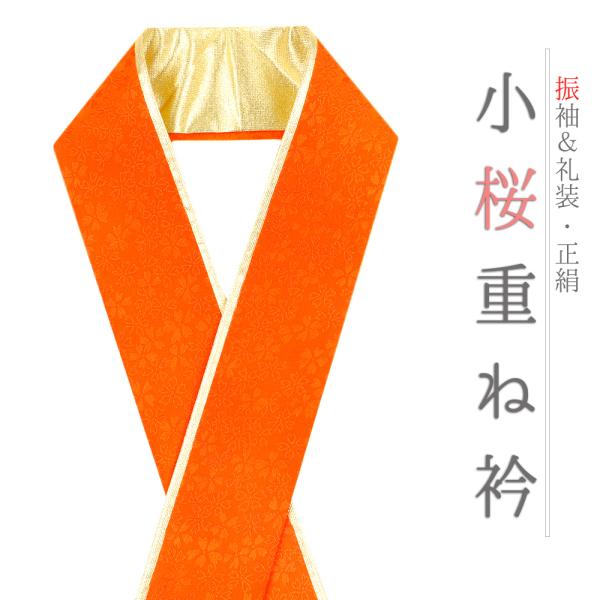 重ね衿 振袖 伊達衿 正絹 オレンジ 橙色 ゴールド 花 桜 小花 襟