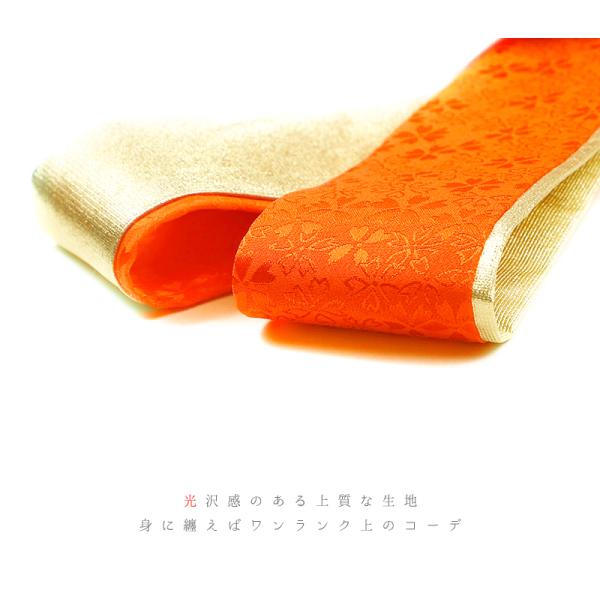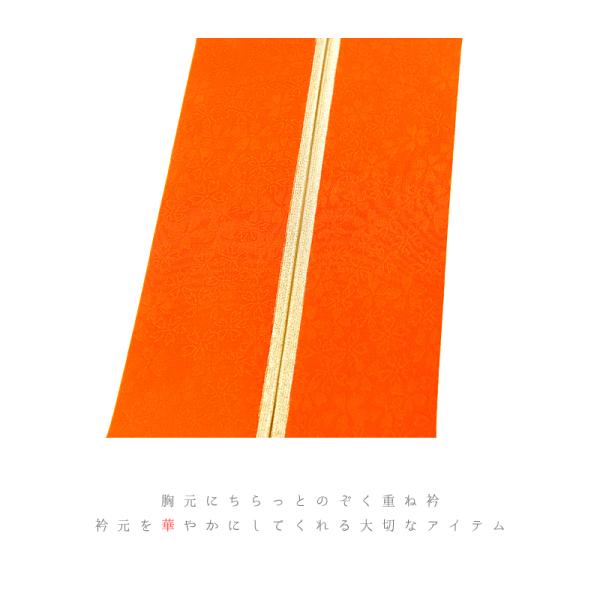 重ね衿 伊達衿 正絹 オレンジ 橙色 金 ゴールド 花 桜 小花 襟ピン付き 裏金 礼装用 フォーマル 高級 日本製 お洒落 上品 可愛い 大人 使える 簡単 ちりめん 訪問着 振袖 色無地 成人式 結婚式 卒業式 入学式 卒園式 入園式 七五三 お宮参り お茶会 パーティー No.10-5133