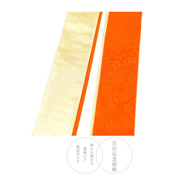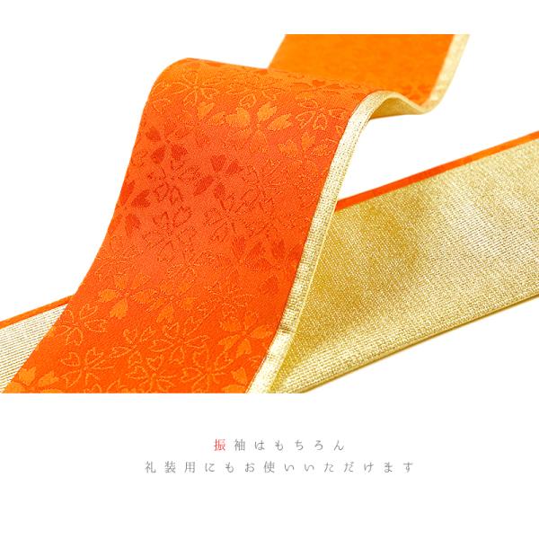 発色の良いオレンジ色に桜模様上品な光沢の金色