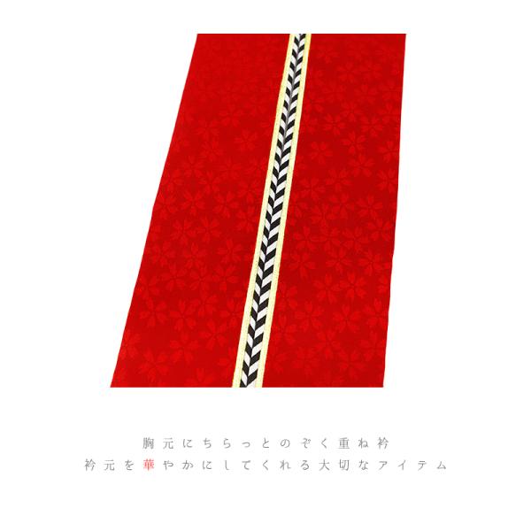 重ね衿 振袖 伊達衿 正絹 赤 渋赤 白 オフホワイト ゴールド 花