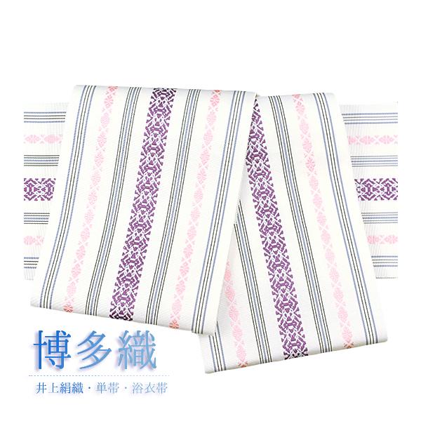 半幅帯 博多織 浴衣帯 博多帯 草木染 袴下帯 袴下 正絹 浴衣 白地 紫 ピンク 三献上 独鈷 本場筑前博多織 細帯 単衣帯 単衣 4寸 No.10-6055