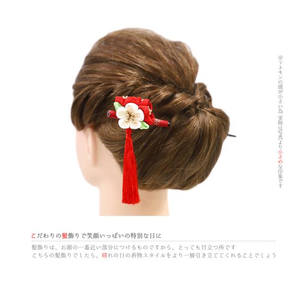 髪飾り 成人式 つまみ細工 赤 振袖 袴 花 一本差し 白 ちりめん 房 かんざし シンプル おしゃれ かわいい 人気 和柄 和装 着物 No.12-0010