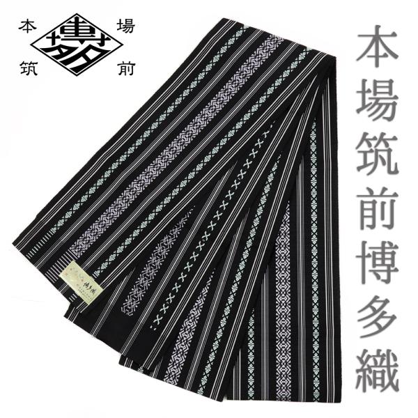 浴衣帯 ゆかた帯 半幅帯 博多織 博多帯 正絹 浴衣 黒 三献上 独鈷 本場筑前博多織 細帯 単衣帯 日本製 夏祭り 花火大会 No.10-7265
