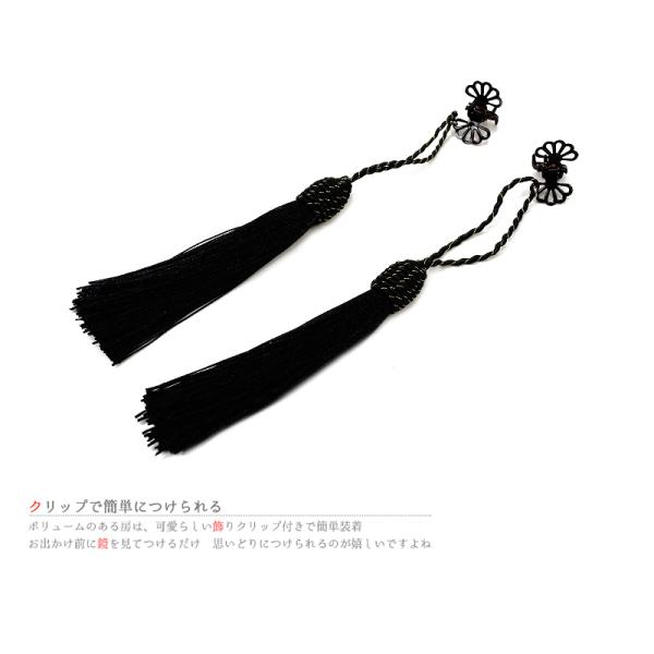 髪飾り 成人式 振袖 袴 2点セット 黒 房 クリップ タッセル ヘアアクセ ヘッドドレス 卒業式 結婚式 入園式 卒園式 謝恩会 七五三 浴衣 パーティー コスプレ No.9-3485