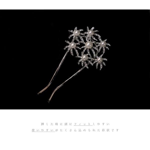 髪飾り 成人式 振袖 袴 シルバー 銀色 パール ラインストーン キラキラ おしゃれ 可愛い 大人可愛い フォーマル ユニーク 個性的 かんざし 簪 U型 和風 ヘッドドレス ヘアピン ウェディング 卒業式 結婚式 入園式 卒園式 謝恩会 七五三 浴衣 パーティー お祭り No.9-4445