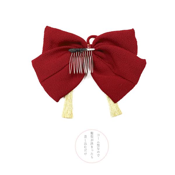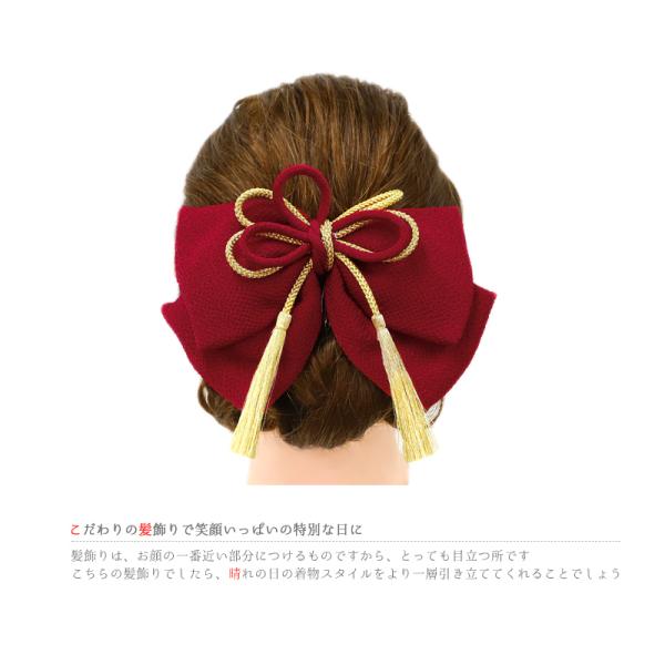 髪飾り リボン 卒業式 袴 成人式 赤 振袖 ゴールド ちりめん 組紐 房付き 和柄 かんざし おしゃれ 大きい かわいい 結婚式 七着 No.9-4947