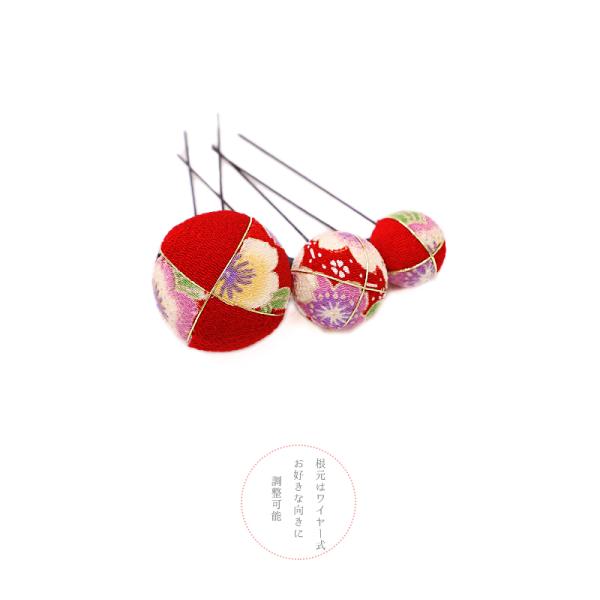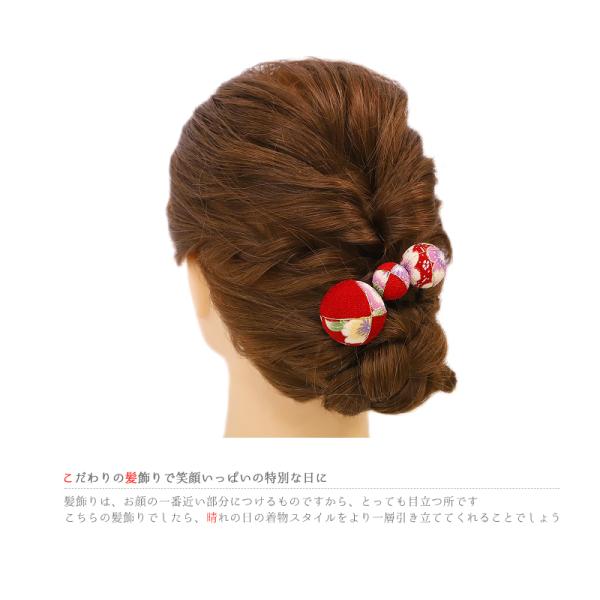 髪飾り 成人式 赤 振袖 袴 3点セット 玉飾り ゴールド ちりめん 和柄 小さい おしゃれ かわいい かんざし 七五三 浴衣 パーティ No.9-5144