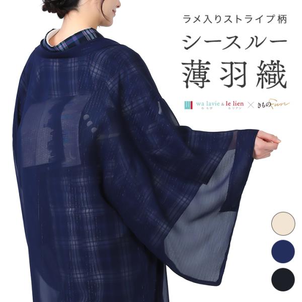 羽織 シースルー 裄70 ~ 裄72 羽織り 春 夏 秋 着物 ポリエステル 楊柳 ストライプ 単品 レディース 普段着 仕立て上がり 羽織もの 爆買