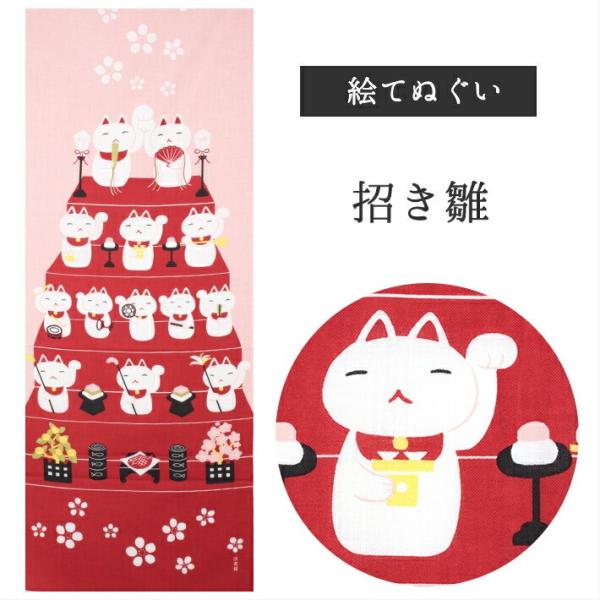 餅花と満開雛 濱文様 てぬぐい 絵てぬぐい タペストリー 季節柄 横浜捺染 伝統技術 春 冬 ひなまつり 雛祭り 雛飾り もちはな ふんわり 優
