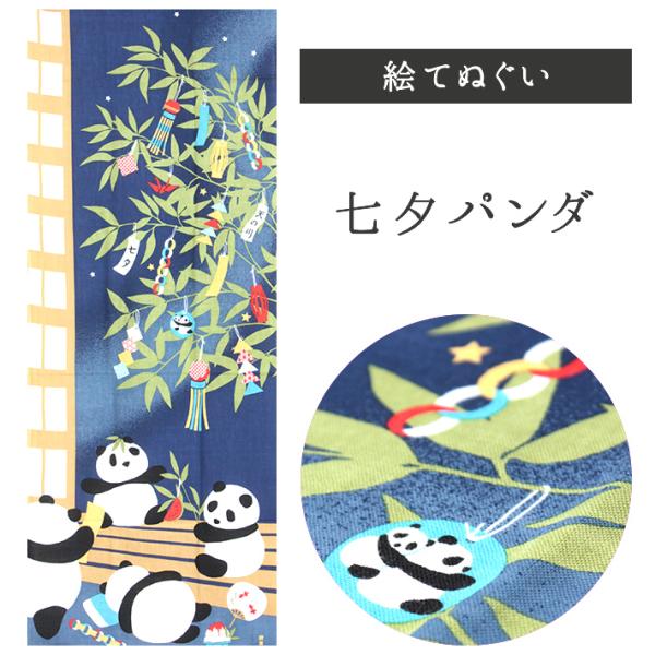 七夕パンダ 濱文様 てぬぐい 絵てぬぐい タペストリー 季節柄 横浜捺染 夏 七夕 7月7日 笹の葉 パンダ カフェ 壁掛