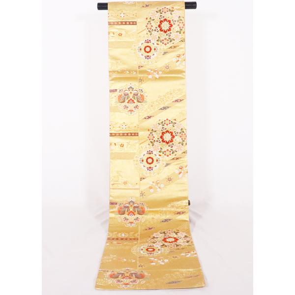 留袖用 袋帯 正絹 花鳥紋 金箔 F5273 中古 美品 着物 レディース Mサイズ オールシーズン 入学式 卒業式 結婚式 送料無料