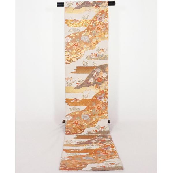 留袖用 綴れ袋帯 正絹 銀 遠山 オシドリ 唐花 Sサイズ F5309 中古美品 公式行事 レディース シルク オールシーズン 送料無料
