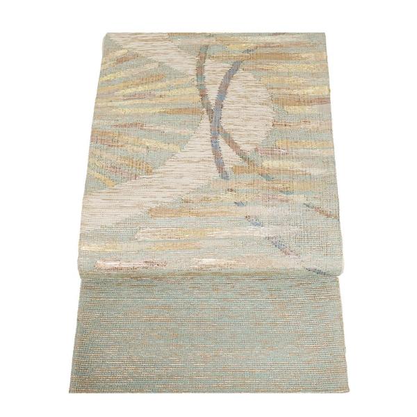 絽 袋帯 正絹 緑 金 銀 櫛織 流水 Mサイズ F7940 美品 夏帯 盛夏 単衣 レディース シルク ギフト 送料込み