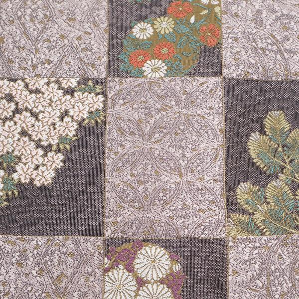 礼装用 単衣 袷用 袋帯 正絹 グレー紫 緑 金 市松模様 七宝文 大王松 パルメット唐草文様 菊 撫子 Lサイズ F8098 未使用品 送料込み