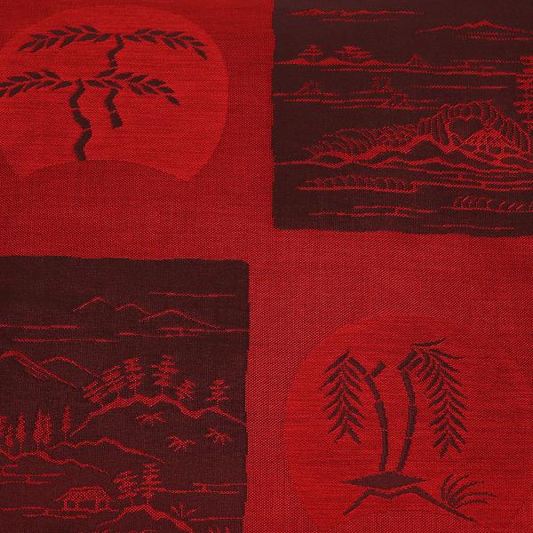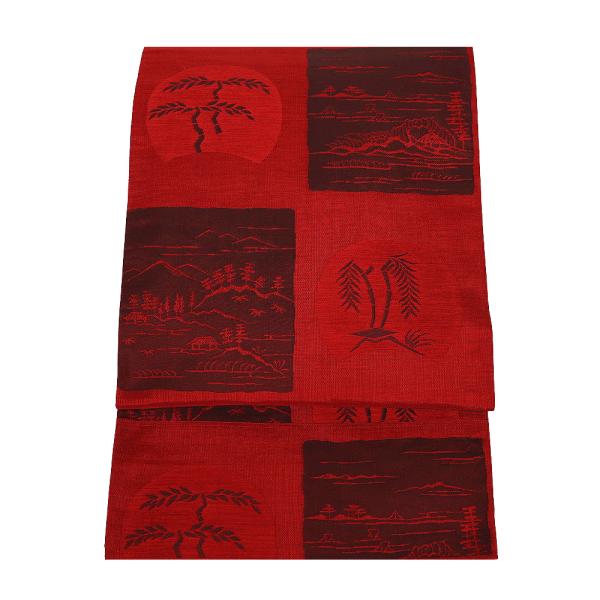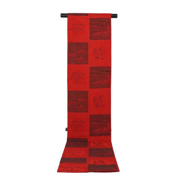木屋太 訪問着用 西陣織袋帯 正絹 赤 墨黒 樹木 山水画 色紙文 全通 Sサイズ F8650 未使用品 レディース シルク ギフト 送料無料